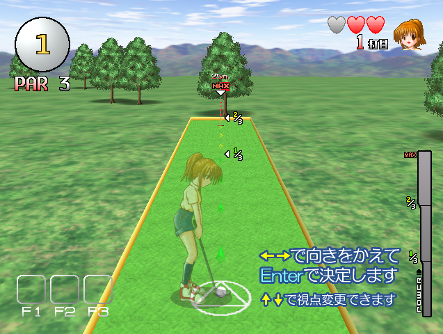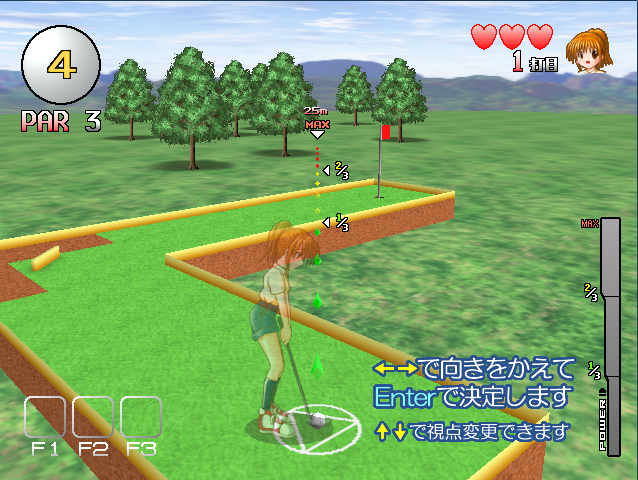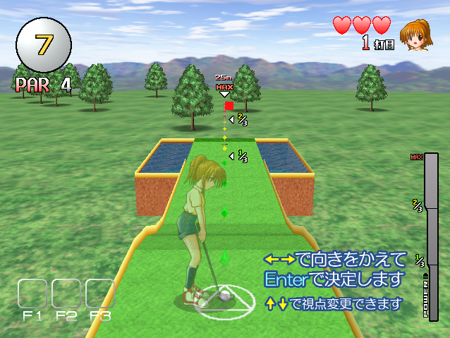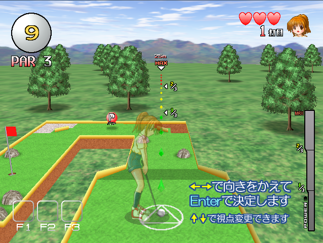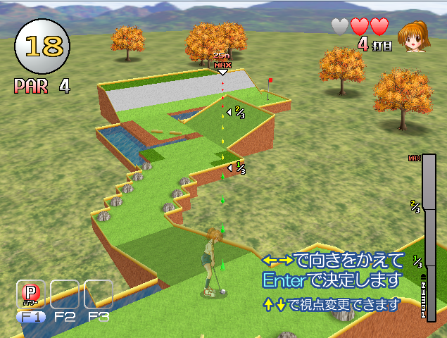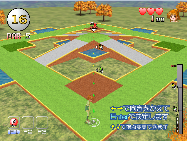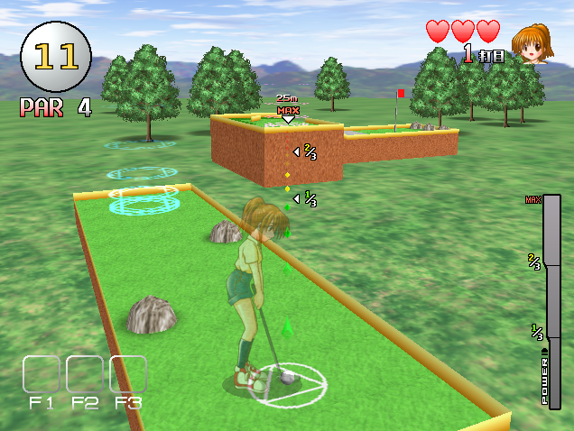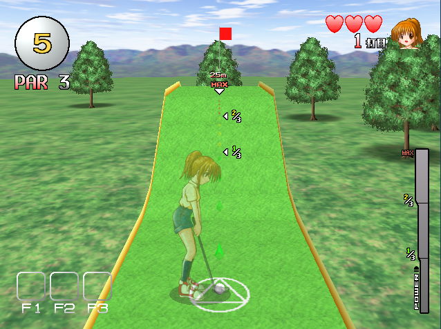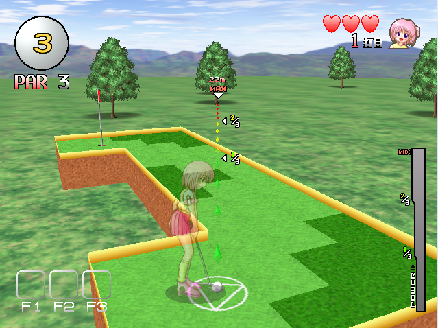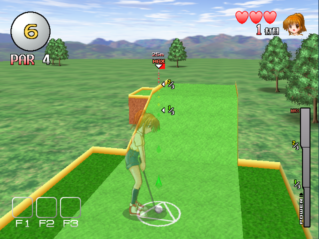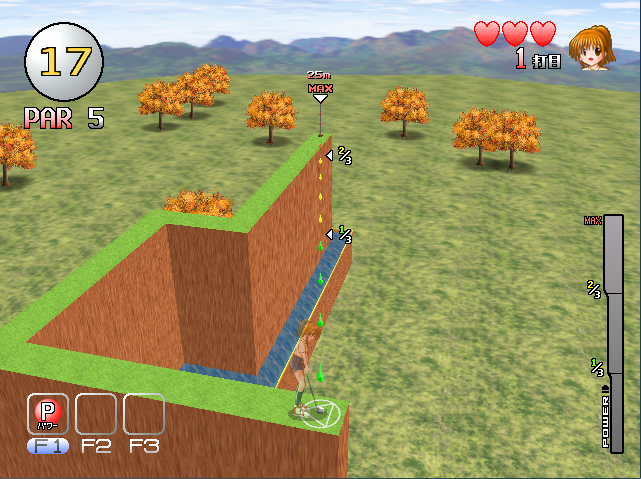ポニ子は黄色の半分くらいで打てば、ホールインワンを狙える。