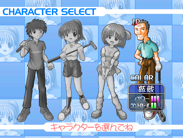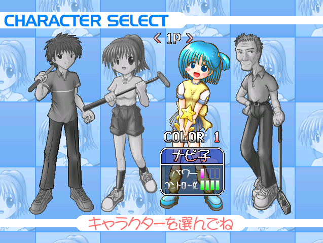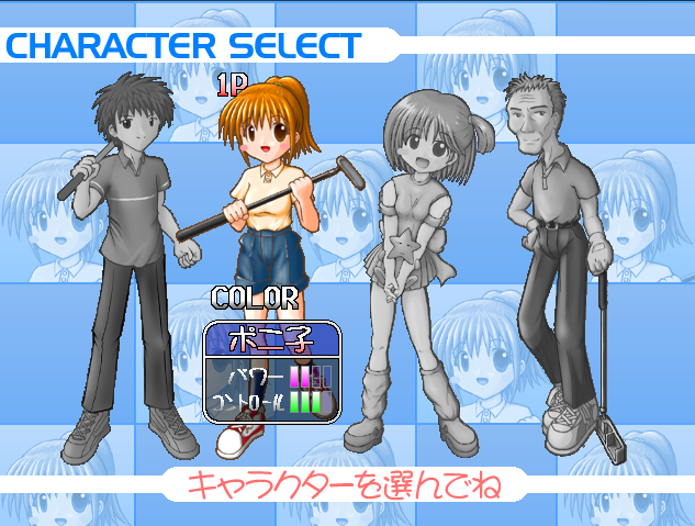 このゲームは4人のキャラが選択可能。好みに応じて好きな人を選びましょう。やりやすいのは、主人公格のポニ子。