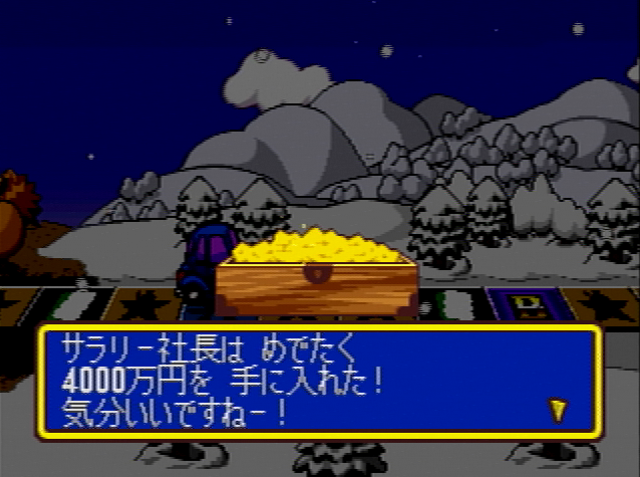 ただし後半で高確率で発生する「世界ダジャレ選手権」で優勝すると、5000万円の収入がもらえる。
