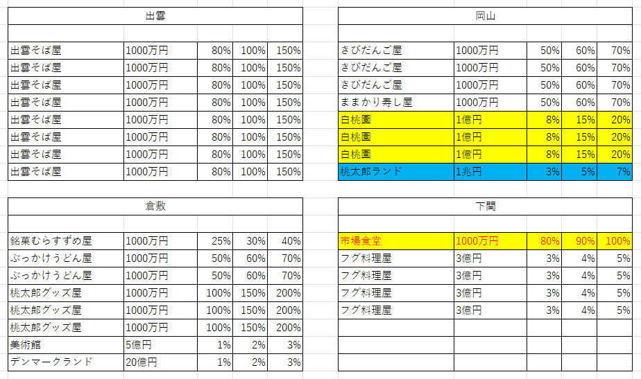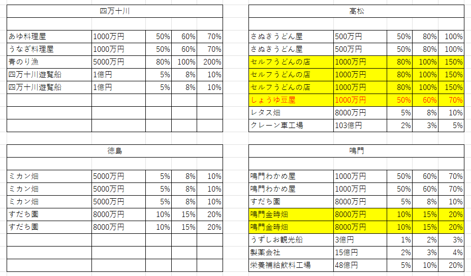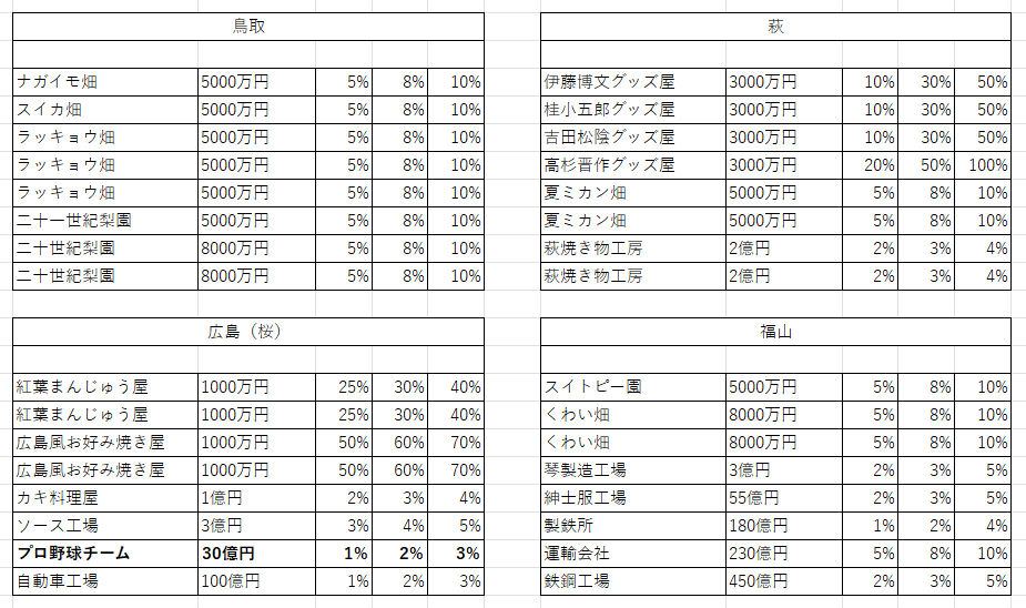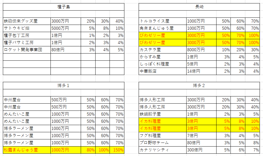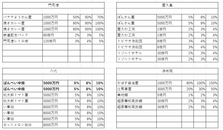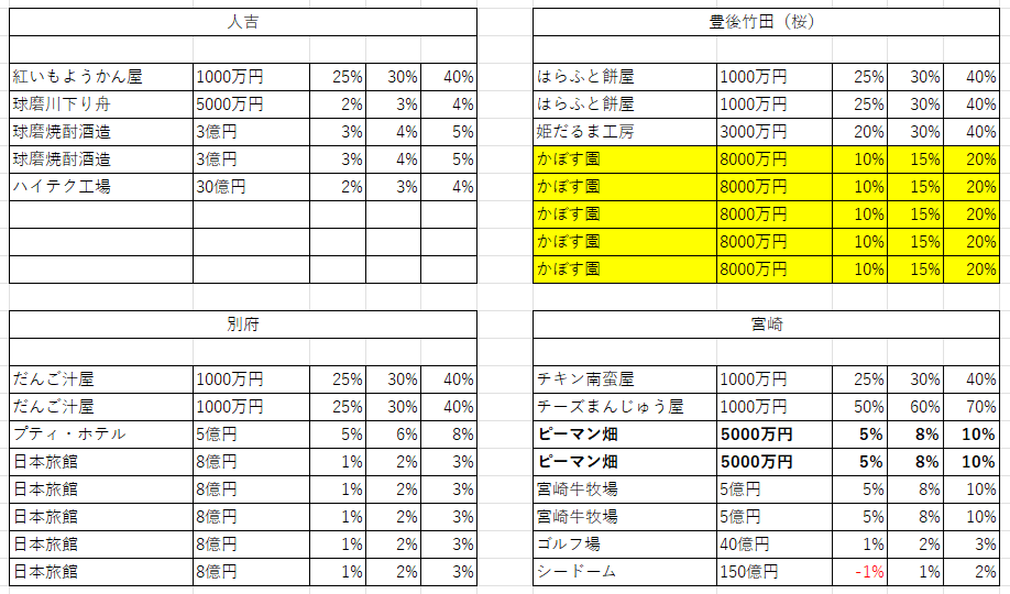 小判が出る農林物件をなるべく早く取ったり、鹿児島を独占できると大きい。