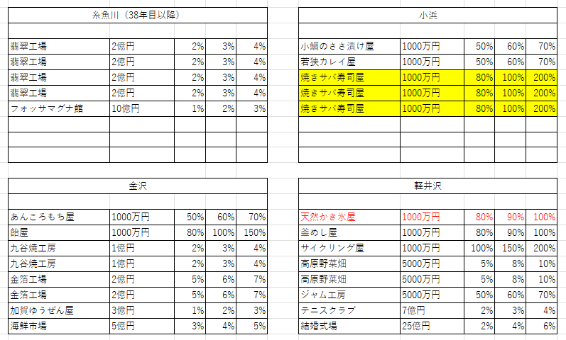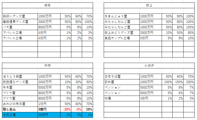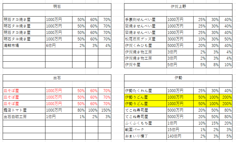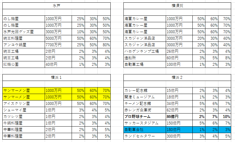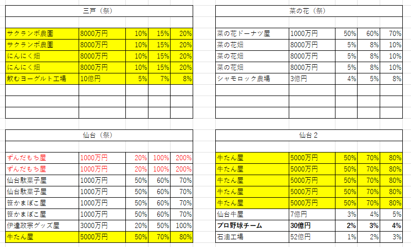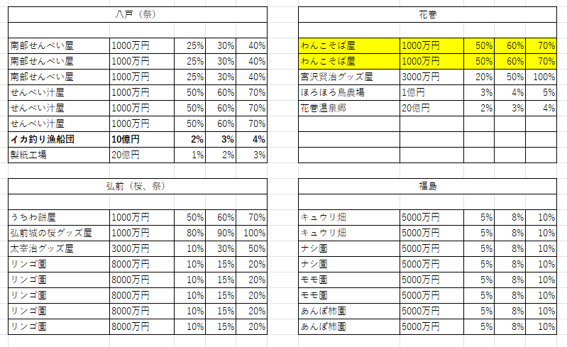 桜イベントや東北祭イベントなど、駅ごとの大き目の収入イベントが起きる場合は、駅名横に記載。