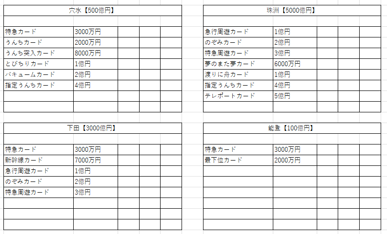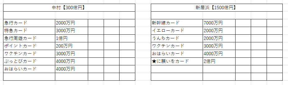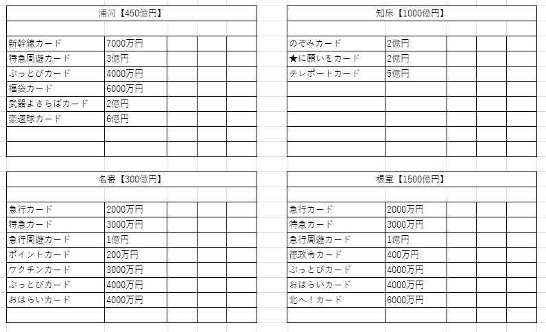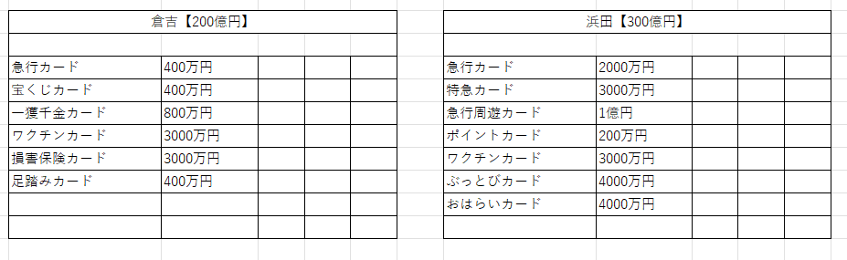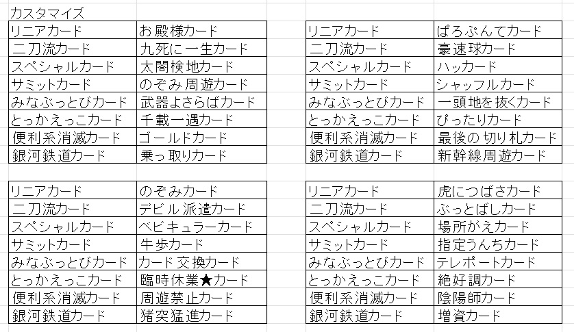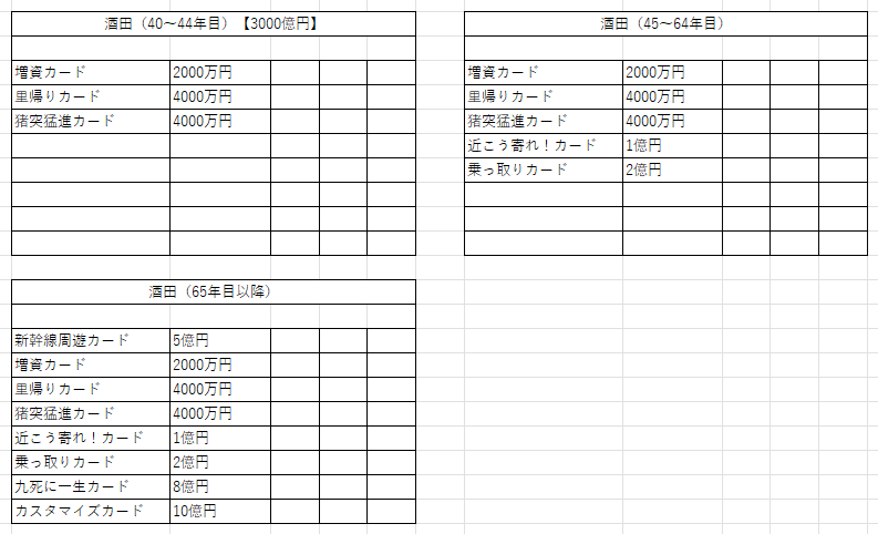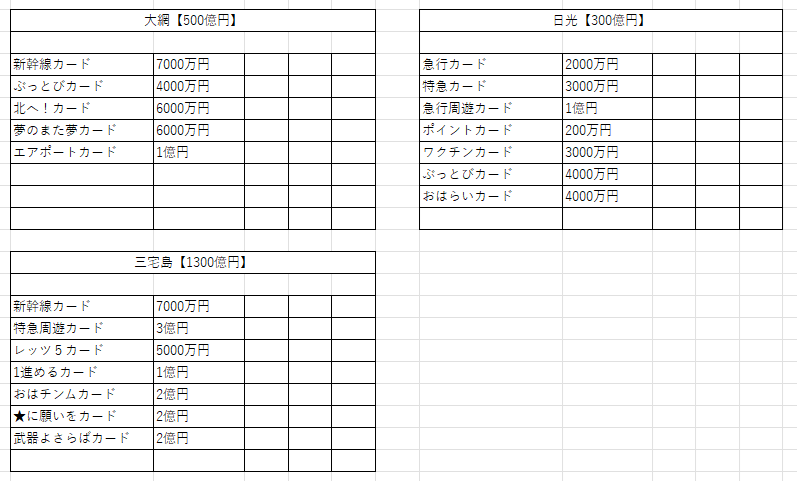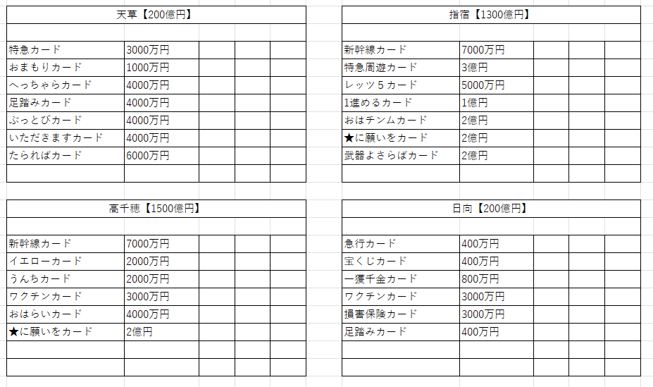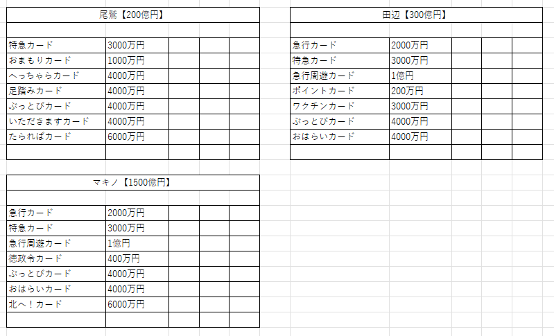 鉄道省を独占+最大増資すると、リニアカード、ぴったりカード、九死に一生カードの3枚がもらえる。