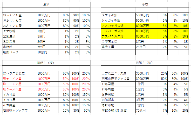 桜イベントが発生しても、函館の収入がないので注意。