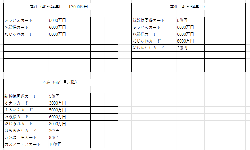 また今作は60年目以降、「MY★売場」が解禁となりカード売場が購入できるようになるため、売場名の横に必要金額を記載。