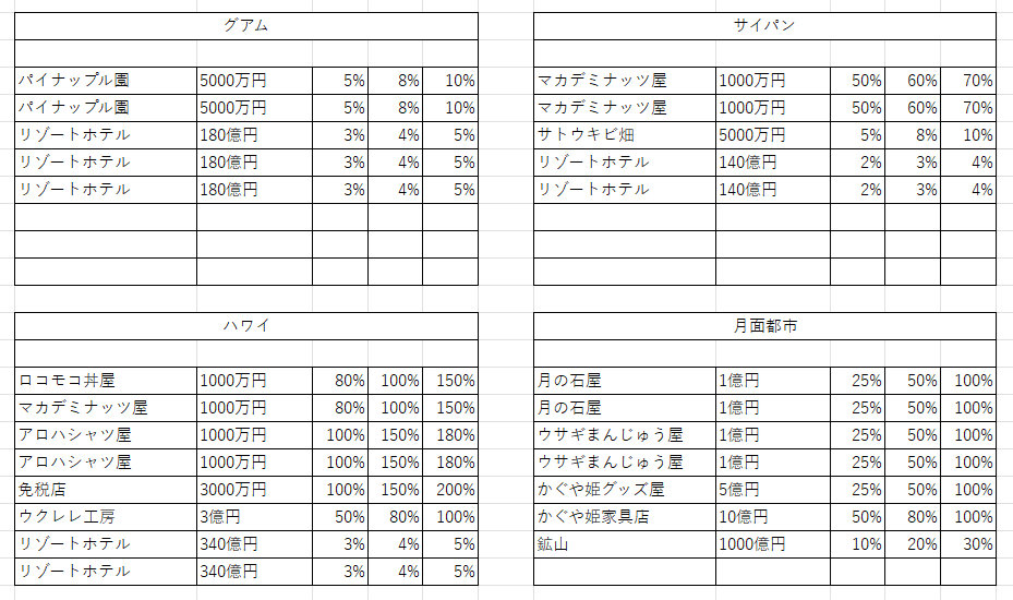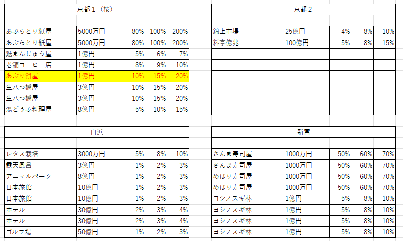 デパートで福袋や福引きがもらえるイベントが起きたり、渋谷のIT企業のワクチン開発や物件の買収(インサイダー取引などで大損害の可能性もあり)といった、利益をもたらしてくれる物件が多め。