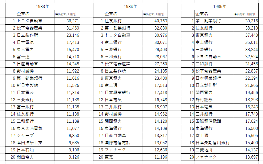 1983年から84年にかけて、住友銀行の時価総額4倍になってるし。