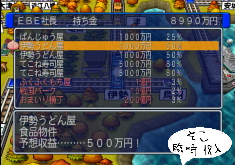 ひたすら「ここは臨時収入が出るので買っときましょう」「ここを独占or増資できるとでかいです」くらいしか言うことない。