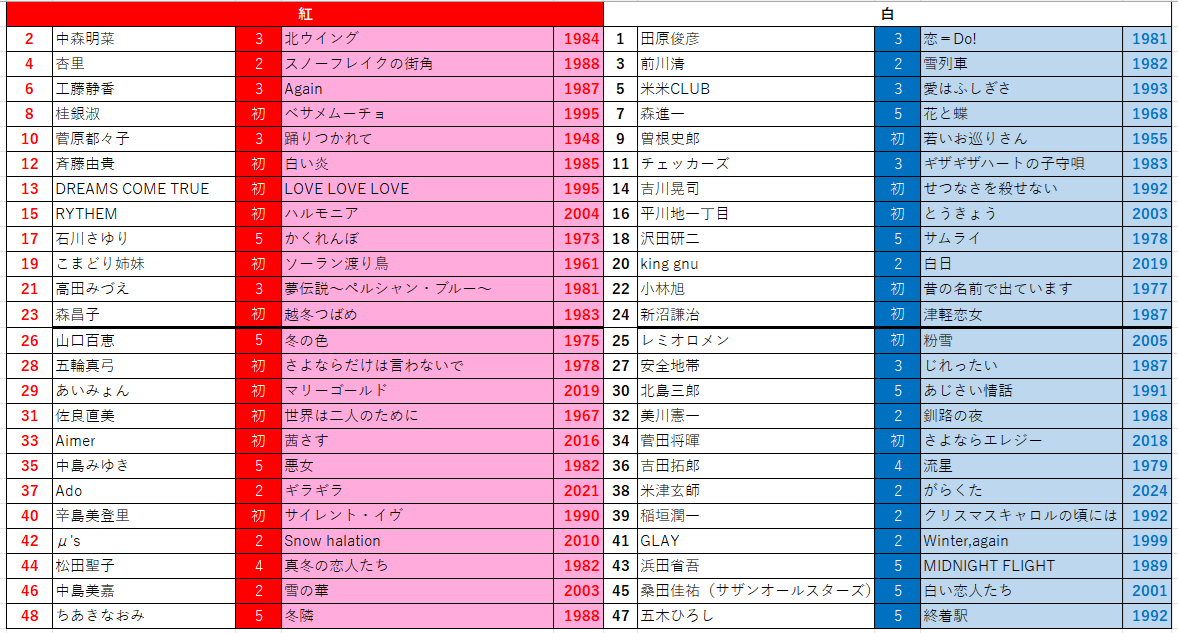 ……さて前置きが長くなりましたが、今回は私なりの理想の紅白の発表(5回目)。