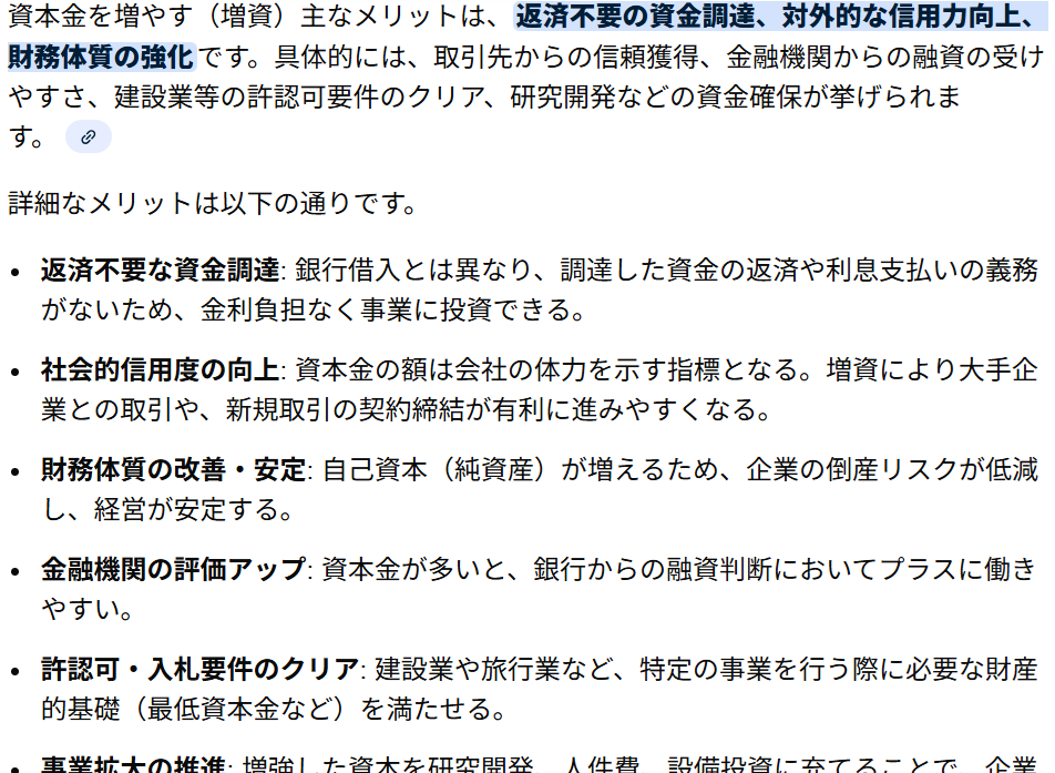 そしてデメリットもあり、税金や配当金の支払いが増えたりするようだ。