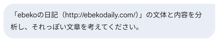 というわけで、こんな質問をして、私っぽい文章をお願いした(Geminiの無料版高速モード)。
